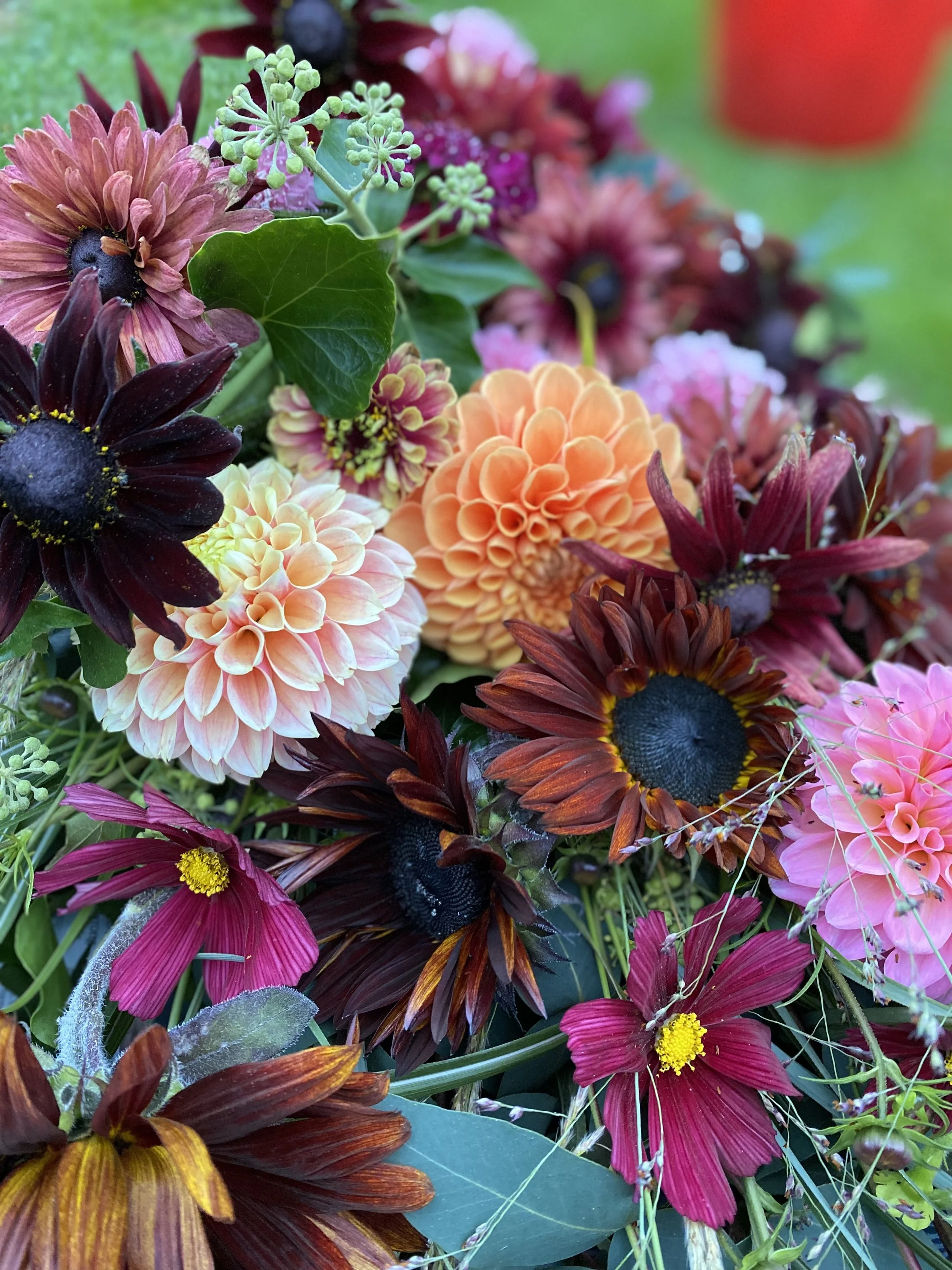 A true Norfolk provenance with seasonal flowers that have been grown sustainably. The sheaf is pieced together in parts that can be broken down and enjoyed in vases after the funeral.