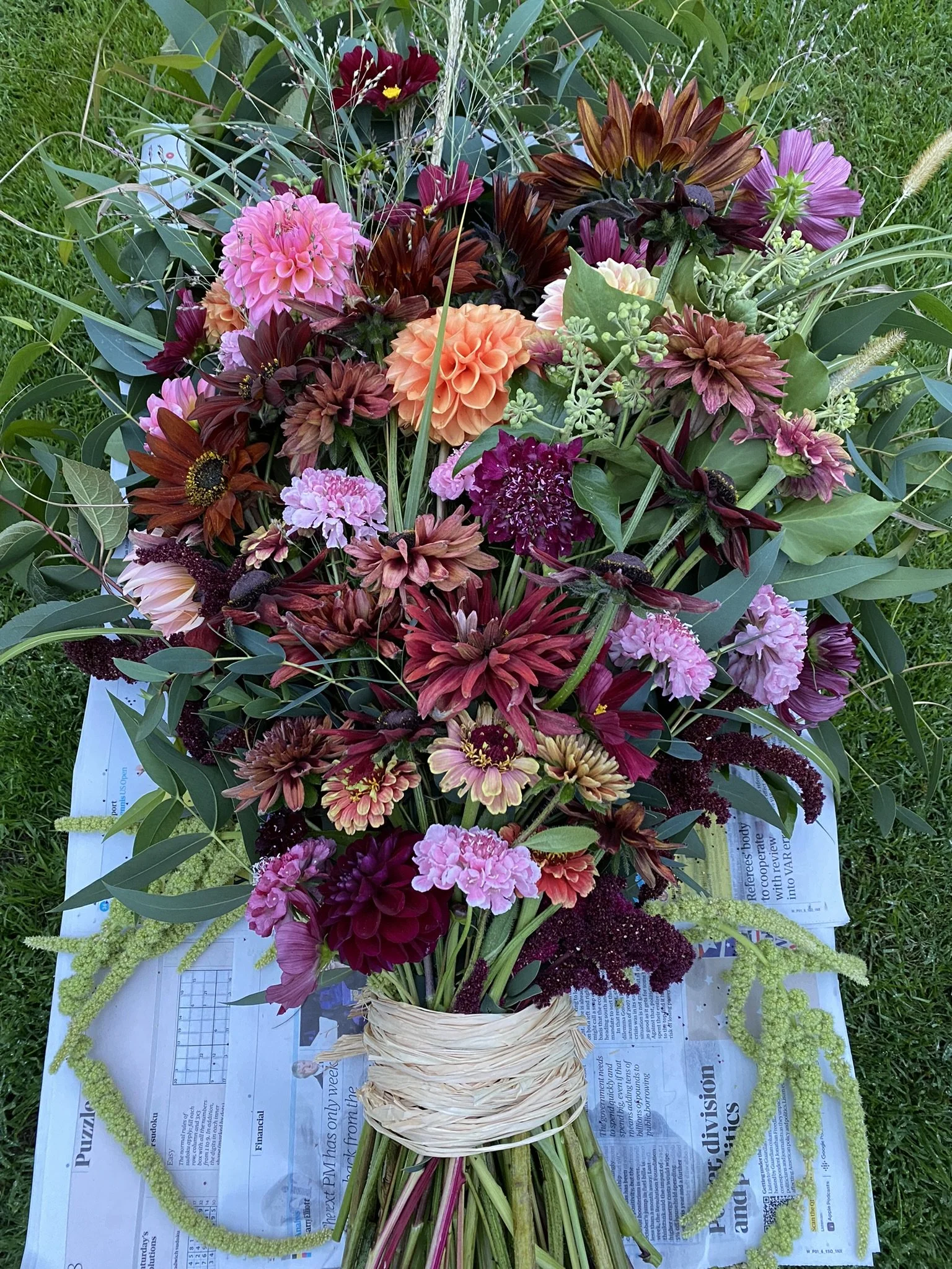 Sheafs are only available during the British flower growing season, from June to October, using appropriate flowers without floral foam or oasis.
